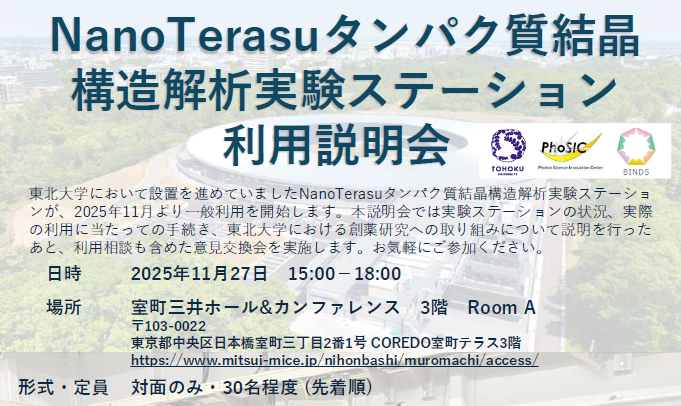 NanoTerasuタンパク質結晶構造解析実験ステーション 利用説明会 開催のお知らせ