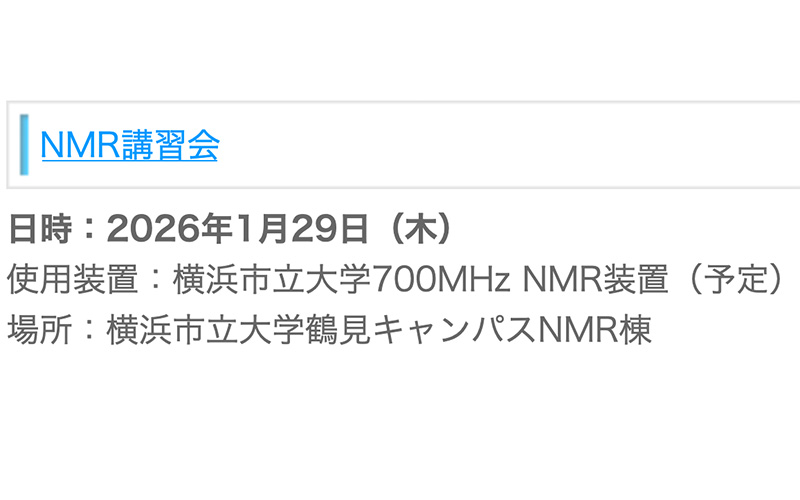 よこはまNMR研究会 第76回ワークショップ「天然物の構造研究~低分子から高分子まで~」開催のお知らせ